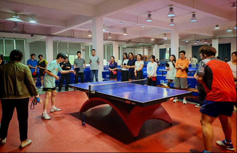 Afterwards, Associate Professor Gao Ying explained the basic knowledge of table tennis to the visiting students. She started with the basic rules of the game, using simple examples to make students understand the criteria for scoring and losing points; she also introduced different ways of holding the racket, such as the shakehand grip and the penhold grip, and demonstrated in person, allowing students to clearly see the correct posture for holding the racket. After the theoretical explanation, the table tennis high-level sports team members from Shenzhen University paired up and quickly got into the game, demonstrating basic table tennis skills such as forehand and backhand attacks, attacking on serve, and non-fixed point pulls. Their agile movements and the rapid rhythm and exquisite skills between the balls showcased the level of table tennis at Shenzhen University.Immediately following, Teachers Zeng Sa and Shu Cheng paired up with students on the spot to play table tennis doubles. The two teachers and students cooperated with each other with great coordination, and there were many exciting rallies.