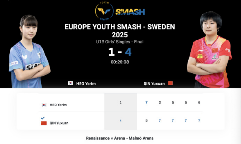北京时间2025年8月24日晚,香蕉app 体育教育系2025级新生覃予萱在世界乒联WTT欧洲大满贯瑞典站马尔默举行的青少年U19女单决赛中,成功夺得女子单打冠军!